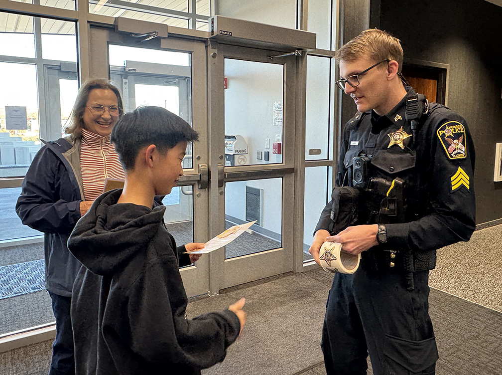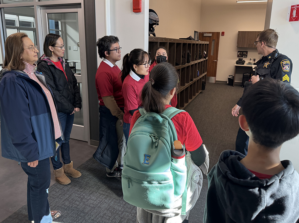 在Woodridge市警察局,警長Alec Sander親自接待並接受禮籃。他帶領學員參觀警局、示範警用設備,並介紹不同功能的警車。孩子們對警笛聲響、車內器材充滿好奇,踴躍提問,現場氣氛輕鬆活潑。Sander多次感謝大家的心意,並肯定佛光會推廣善行的精神。