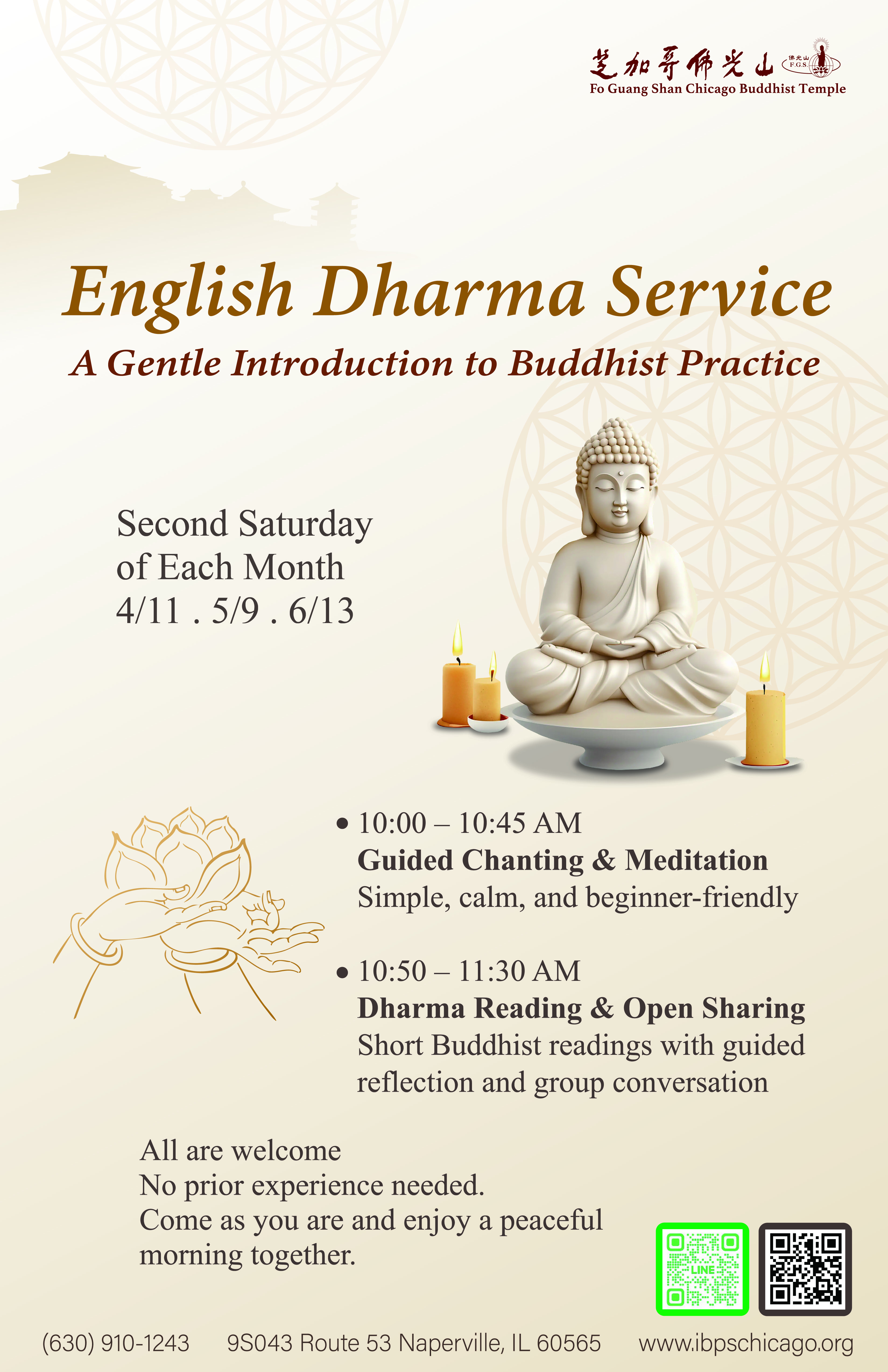 Fo Guang Shan Chicago Buddhist Temple (IBPS) / 芝加哥佛光山 9S043 Route 53 Naperville, IL 60565 TEL: 630-910-1243 Email: chicago@ibps.org