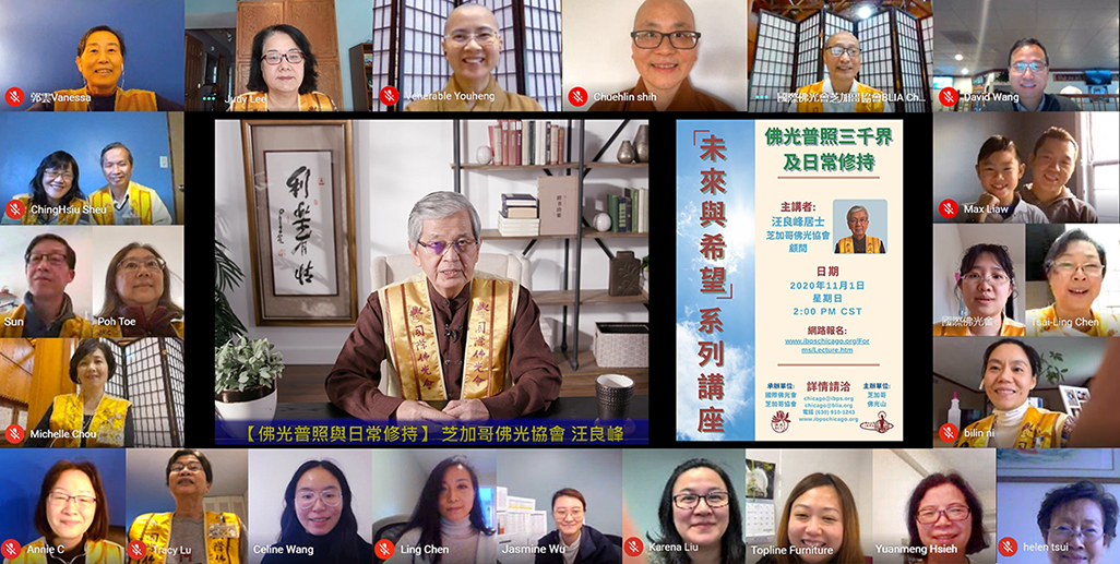 【人間社記者 緣心 芝加哥報導】11月1日國際佛光會芝加哥協會舉辦未來與希望系列講座,禮請到芝加哥佛光協會顧問汪良峰居士主講「佛光普照與日常修持」,逾50位大眾線上聆聽佛學分享,獲益匪淺。「佛光普照三千界,法水常流五大洲」是佛光山開山星雲大師60歲時寫下的。在幾十年後的今天,三百多處遍佈在五大洲的佛光山寺院道場印證了早年大師的願不虛發。