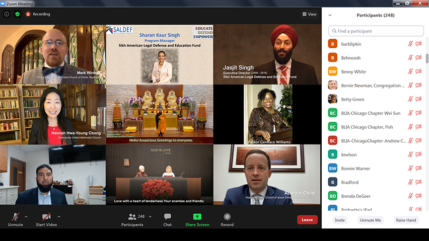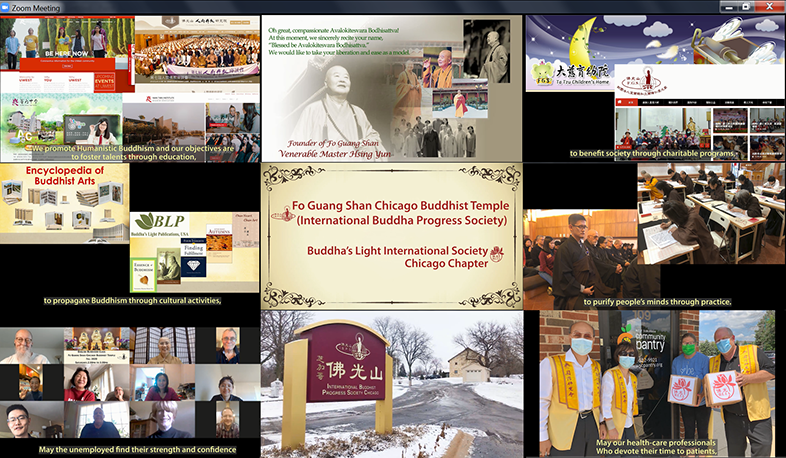 芝加哥佛光山監寺有恆法師作為會上唯一的佛教代表,不僅介紹了芝加哥佛光山的設施,更說明佛光山的四大宗旨、全球300多個道?的國際弘法成果;展現了芝加哥佛光山弘法利生、淨化人心、利益眾生的慈心悲願和菩?行證。進而分享芝加哥佛光協會在疫情期間,捐贈口罩、參與社區服務的無畏行持。