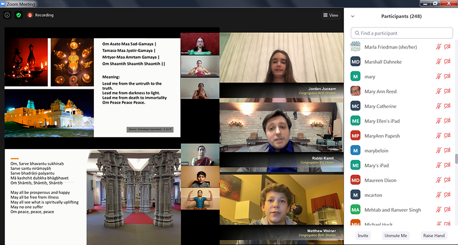 猶太教的小朋友娓娓道來:「信仰是我們最寶貴的禮物,在我們處於最黑暗無助的時候,幫助我們走出困境!」並且與大家分享了在這疫情期間,為幫助那些需要幫助的人,發起或組織食品捐贈;亦有創意地參加線上的手工製作課程、烹飪課程等。」