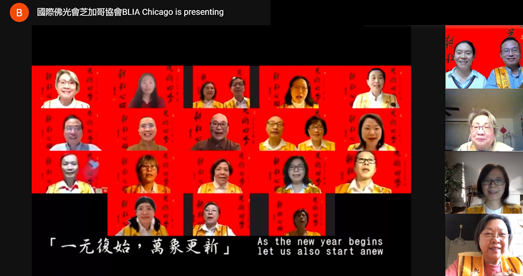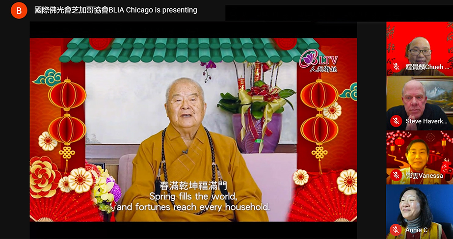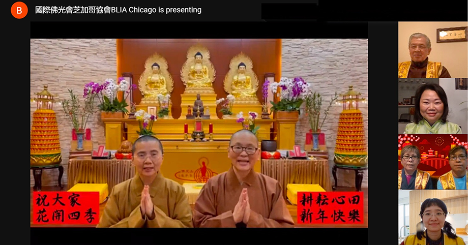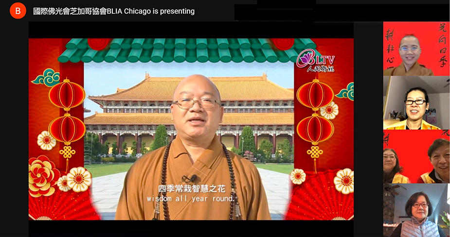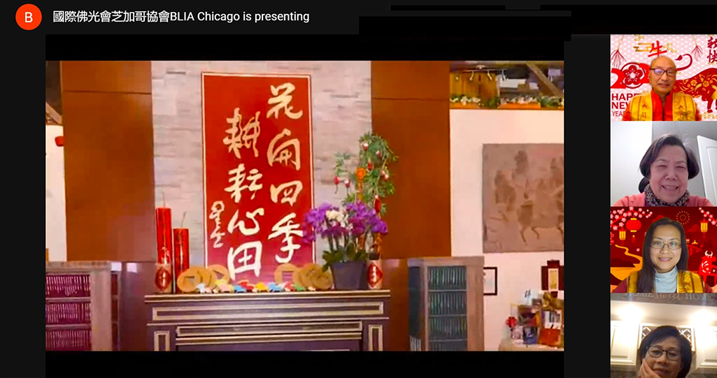 【人間社記者 劉佳 芝加哥報導】芝加哥佛光山於2月14日新春雲端團拜,共賀新年,互道吉祥。在這個特殊的春節,芝加哥佛光山特別採用高科技雲端聚首。不僅可以聆聽到佛光山星雲大師與宗長心保和尚向全球佛光人的新春勉勵;更能夠超越時空,足不出戶、打開螢幕,便可參訪佛光山北美洲各道場,同沾法喜,共享法樂。
