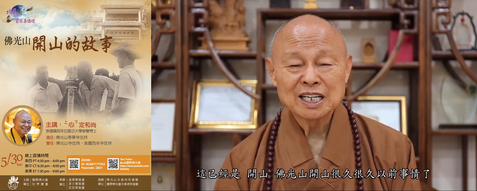 【人間社記者 劉佳 芝加哥報導】5月31日,2021北美雲來集講壇,邀請佛光山退居和尚、現任泰國佛光山泰華寺住持心定和尚講述佛光山的開山故事。超過7000人雲端相聚。聆聽佛光山是如何從一片荒山,到如今弘法五大洲的總本山。透過佛光山開山星雲大師的睿智領導,以及眾法師和護法信徒們的犧牲奉獻,才能獲得這樣的成就。