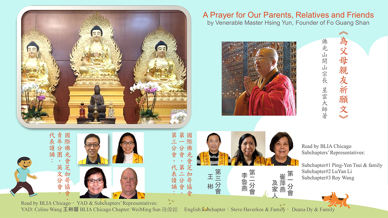 【人間社記者 因和 芝加哥報導】6月19日國際佛光會芝加哥協會首次舉辦雙親節感恩活動。近百位會員在雲端齊聚一堂,各分會精心策劃,參與節目製作表演:青年分團「聽我說謝謝你」的手語表演,活潑動感,展現親情。用中英雙語朗誦星雲大師「為父母親友祈願文」,婉婉道來,令人深省。「將愛心獻給父母」線上烹飪活動,奉行孝道,學會感恩。默契大考驗,拉近距離,培養默契;投籃友誼賽,大人孩子齊上陣,體育競技,團隊合作。