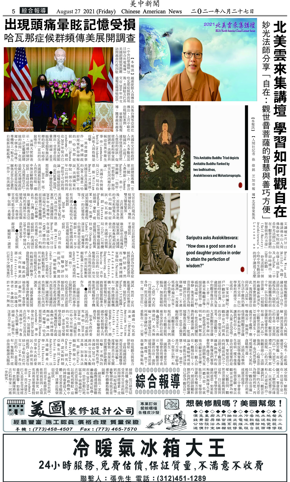 【人間社記者 孫偉銘 芝加哥報導】北美雲來集英文講壇8月21日邀請佛光山人間佛教研究院副院長妙光法師以「自在:觀世音菩薩的智慧與善巧方便」(Self-Mastery: Avalokitesvara’s Lesson on Being Wise and Skillful)為題,在線上經由 Zoom 及 YouTube 二平台即時播出,逾1200人聆聽。
