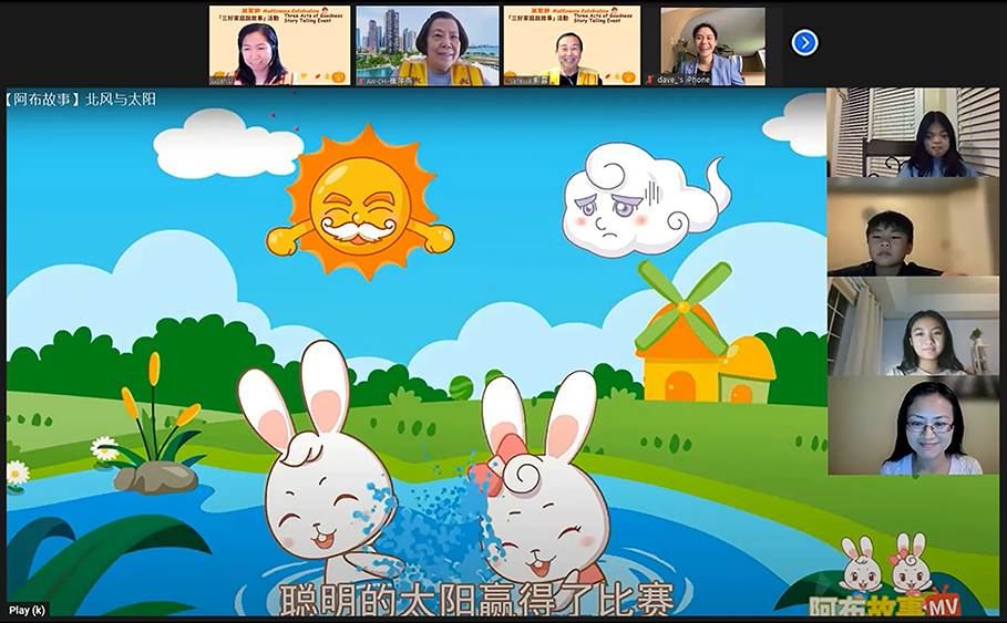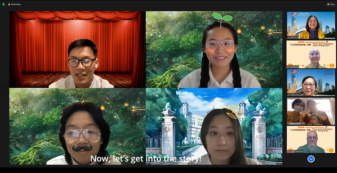 青年分團團長Celine Wang帶領幹部們,運用Zoom道具,創意地帶來「誠實的代價」故事。Haverkos三胞胎姐弟身著表演服裝,演出修行人「馴服野象」的本生故事。綜合大象禮拜佛陀的影片節錄,以及真人扮演修行人和大象,甚至運用泰迪熊代替劇中的小孩,輕鬆有趣,令人印象深刻。