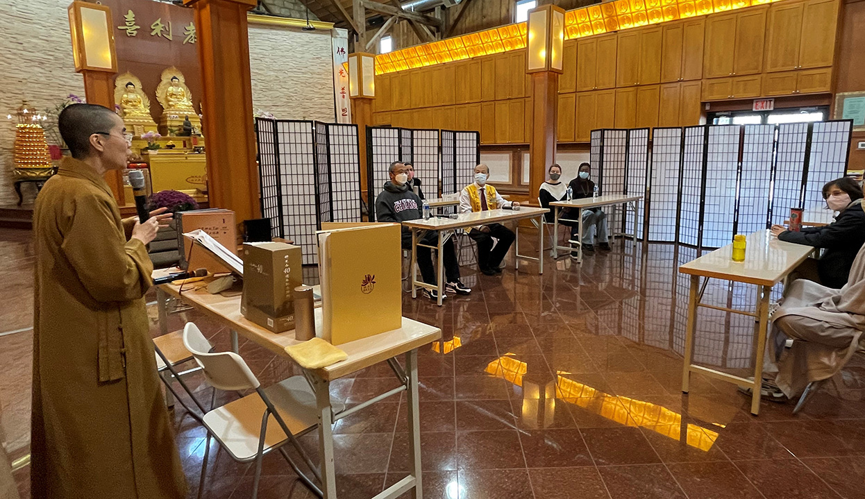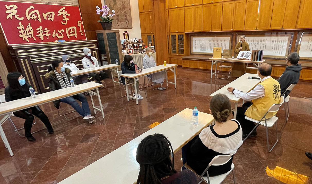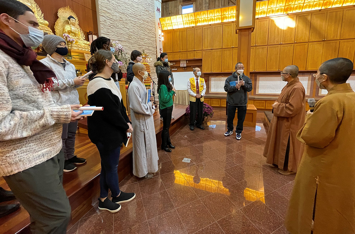 本次親來參訪的9名同學,均是研究所及博士階段的學生,不僅有宗教系中專門研究佛教專業,還有3位是文社科系、一名建築系學生對人間佛教非常感興趣則一同來到芝加哥佛光山。監寺有恆法師專門為他們講解法會程序,同學們認真地學習如何禮佛,跟隨大眾一起誦經修持。同學們覺得意猶未盡,法喜充滿,希望能再來參加芝加哥佛光山的各項法會。