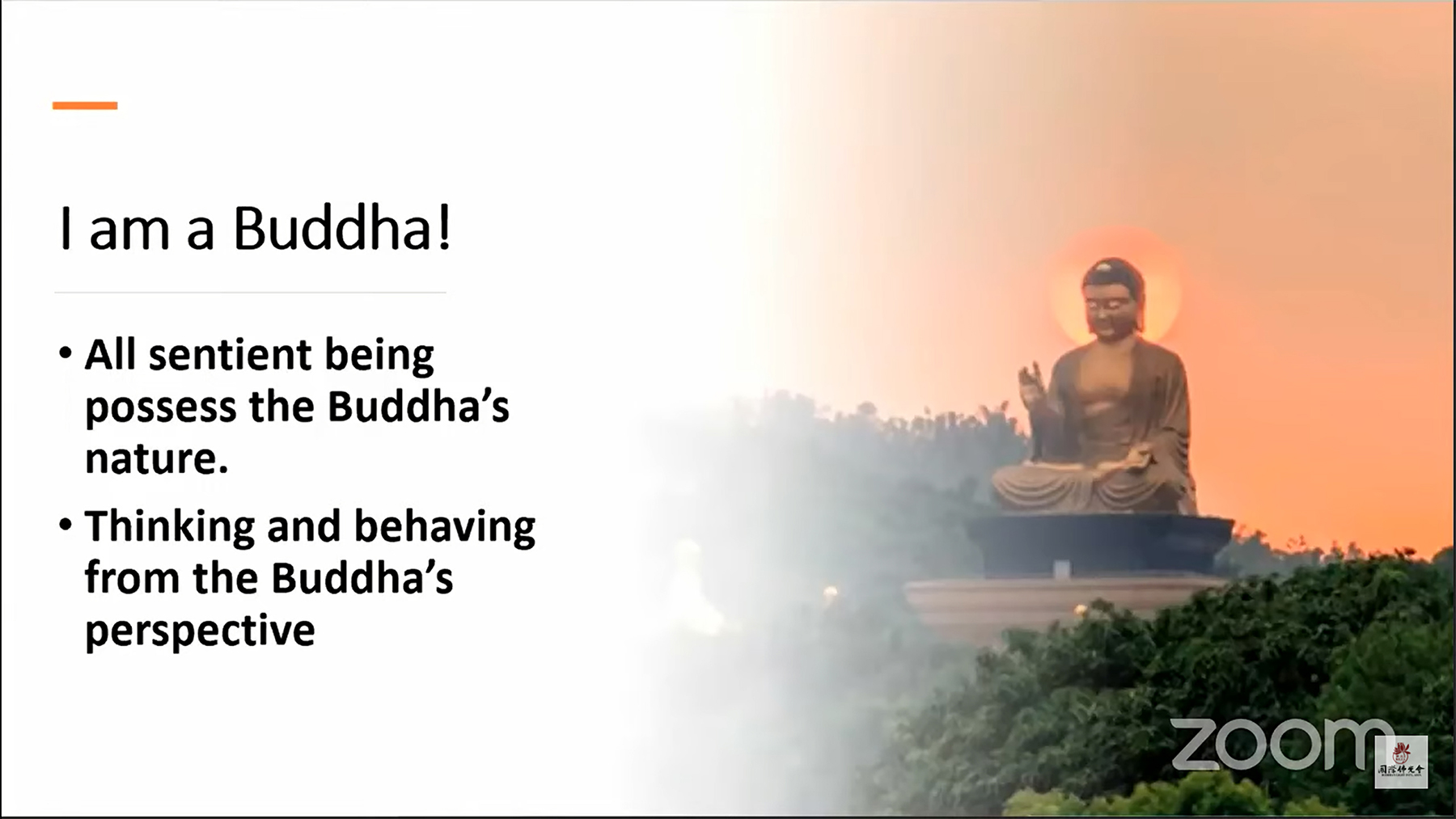 所謂的「找尋佛法」一般學佛人是祈求依靠外在從參加法會、禪修、八關齋戒、吃素等不斷地修持,增强信心,期待有朝一日得以證道開悟,這些從自己的精神力量和智慧以外的來源尋求解脫的過程,都歸類為「求法」。星雲大師鼓勵大家說「我是佛」,希望弟子們在成爲佛教徒之初能先種下佛性的種子,從兩方面來看這個宣言,第一,眾生都有佛性,未來都能成佛。第二,眾生都有佛性,那麽在實踐上要依照佛陀所說的佛法, 開發自心的智慧。同時持續地行「三好」—做好事、說好話、存好心,根據八正道内的四正勤修行來改善自我。