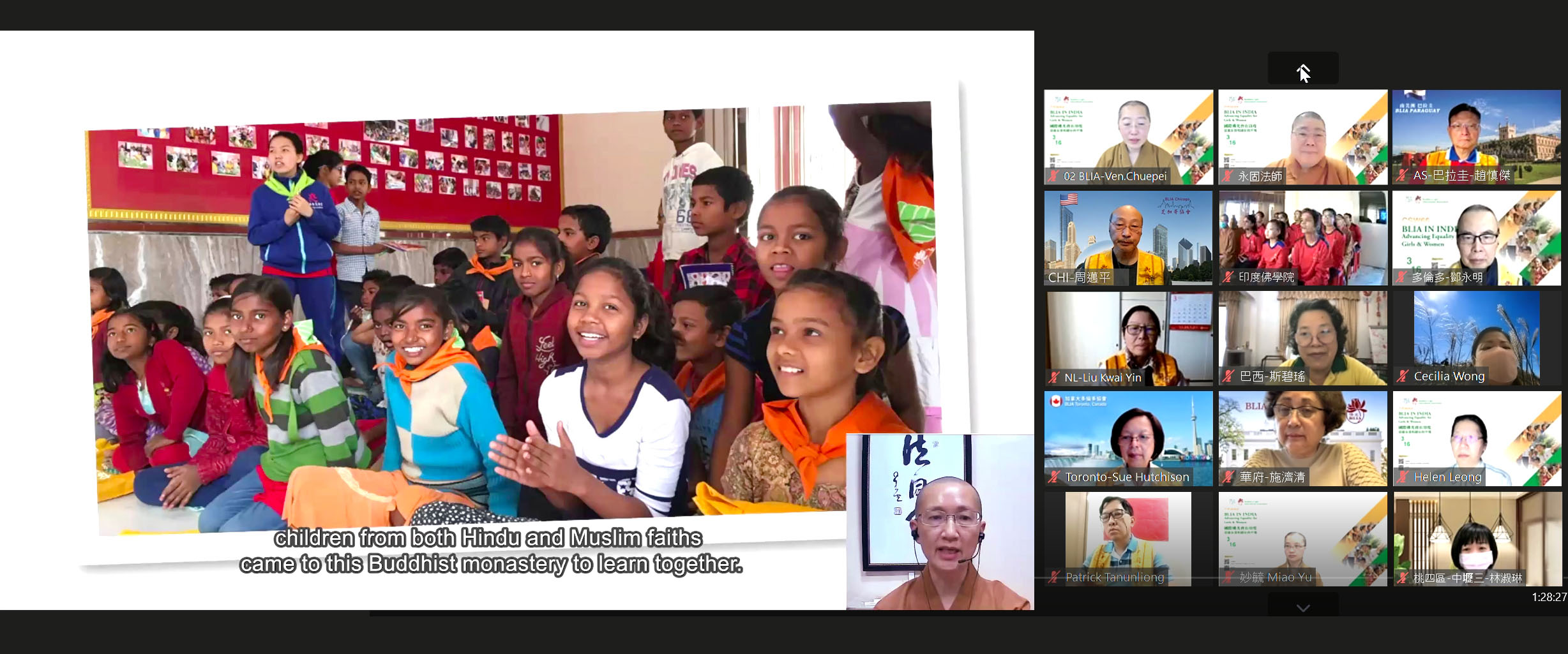 國際佛光會世界總會東南亞及印度副秘書長覺誠法師分享,國際佛光會在印度之緣起,從1963年,星雲大師到印度的菩提伽耶與印度的首相尼赫魯(Nahru)會面後,成立了第一個非漢語系的國際佛光協會,建立菩提伽耶佛學院,沙彌學園,女子佛學院和育幼院,給予貧苦家庭孩童受教育的機會 ,增加信心,翻轉人生。新冠疫情期間,國際佛光會也給予印度物資上的援助,在菩提樹下撒下種子,弘揚「人間佛教」。