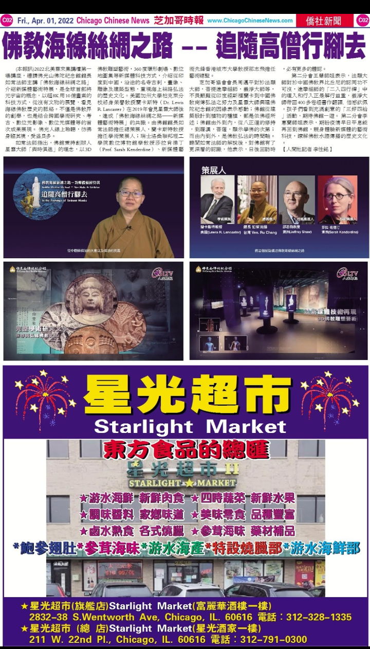 2022北美雲來集講壇第一場講座,禮請佛光山佛陀紀念館館長如常法師主講「佛教海線絲綢之路」介紹新媒體藝術特展,是全球首部將元宇宙的概念,以超8K用10億畫素的科技方式,從沒有文物的展覽,看見海線佛教歷史的脈絡。不僅是佛教界的創舉,也是結合跨國學術研究、考古、數位影像、數位媒體等的首次成果展現。 佛光人線上聆聽,彷彿身臨其境,受益良多。