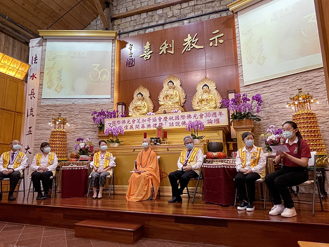 住持永嘉法師在致詞開示中,也簡介國際佛光會成立的緣起、發展及展望。影像展涵蓋國際佛光會成立30年的成果及芝加哥協會舉辦的佛學講座、社區活動、文化活動、多元宗教等活動記錄。李唯誠副處長在會後表示恭祝盛會的圓滿,在參觀了影像展後高度讚賞國際佛光會以及芝加哥協會在這30年中為實踐佛光山”四大宗旨“所取得的卓越成就。