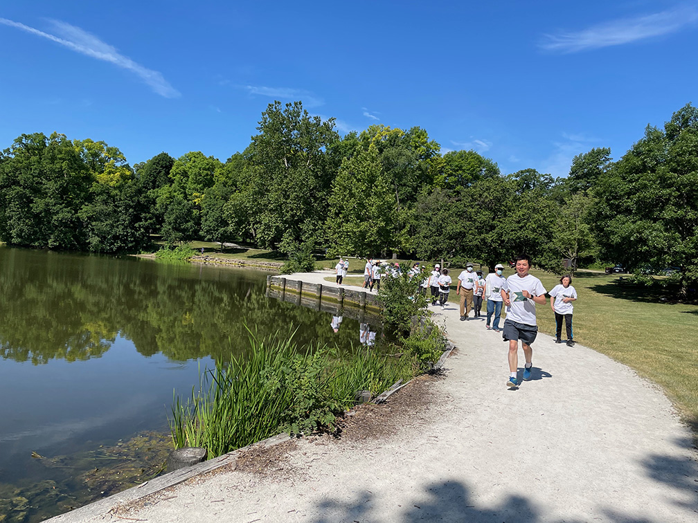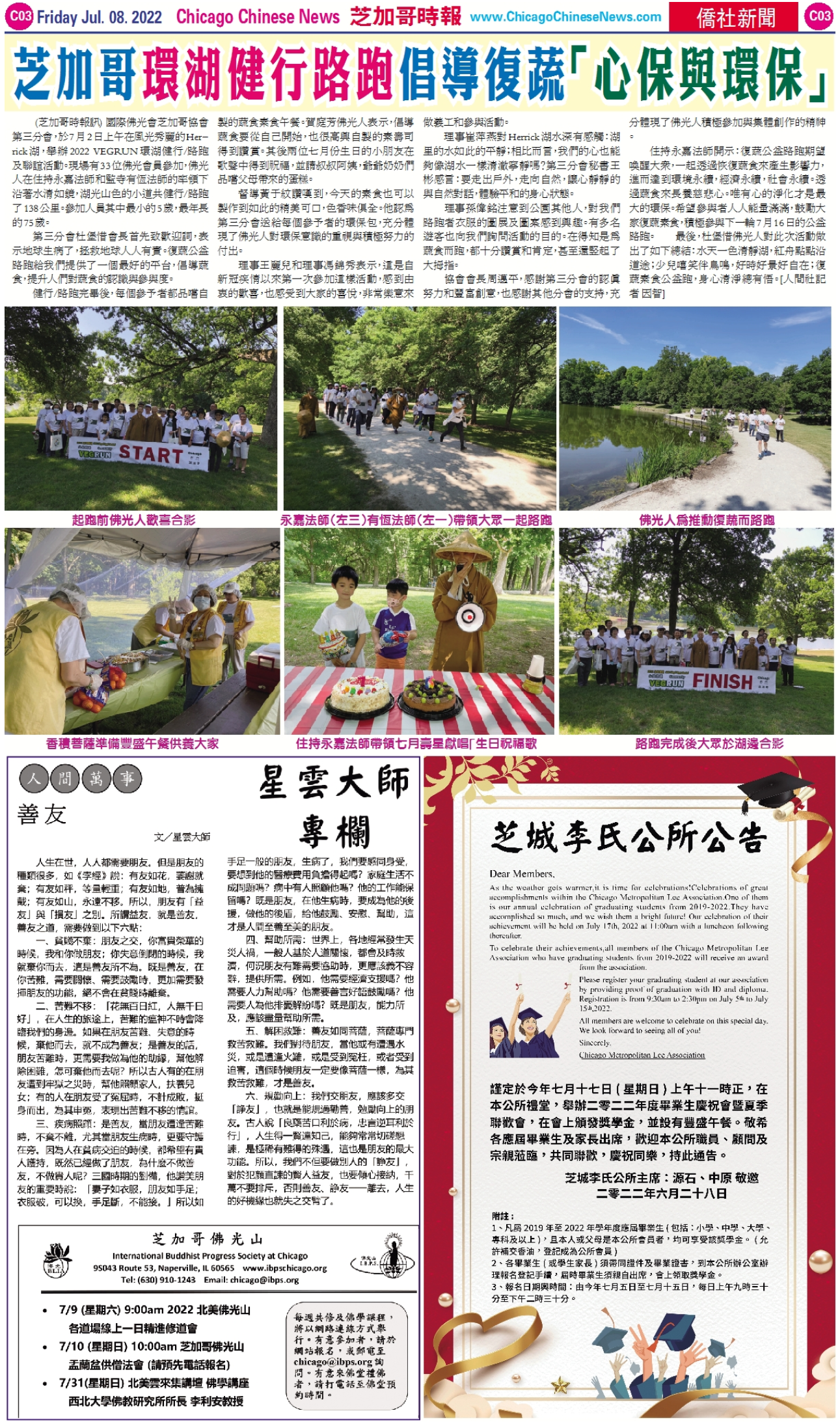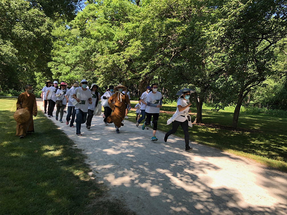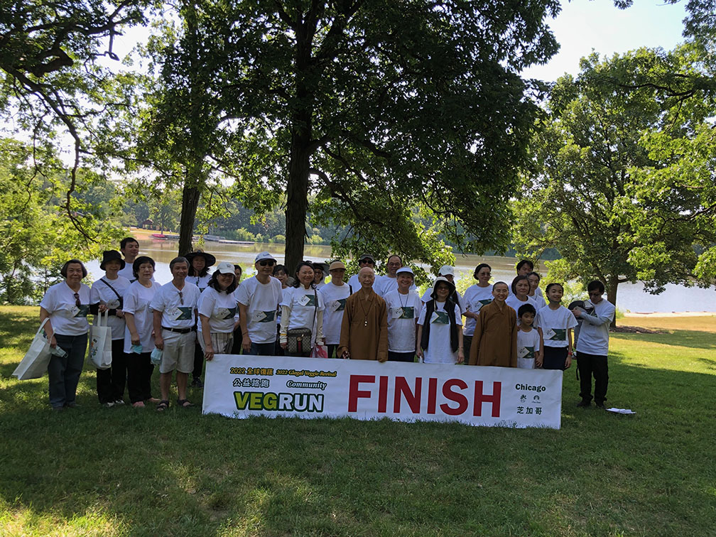 國際佛光會芝加哥協會第三分會,於7月2日上午在風光秀麗的Herrick湖,舉辦2022 VEGRUN環湖健行/路跑及聯誼活動。現場有33位佛光會員參加,佛光人在住持永嘉法師和監寺有恆法師的率領下沿著水清如鏡,湖光山色的小道共健行/路跑了138公里。參加人員其中最小的5歲,最年長的75歲。