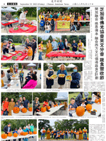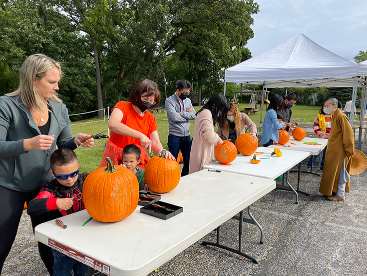 9月24,芝加哥佛光協會英文分會舉辦美國傳統慶典「秋季豐收節」(Fall Harvest Festival),融合西方文化倡導蔬食A計劃。南瓜雕刻大賽,三好兒童信仰傳承。以佛光會的開放與融合,敦親睦鄰,吸引了逾70位佛光親友及芳鄰參與共襄盛舉。
