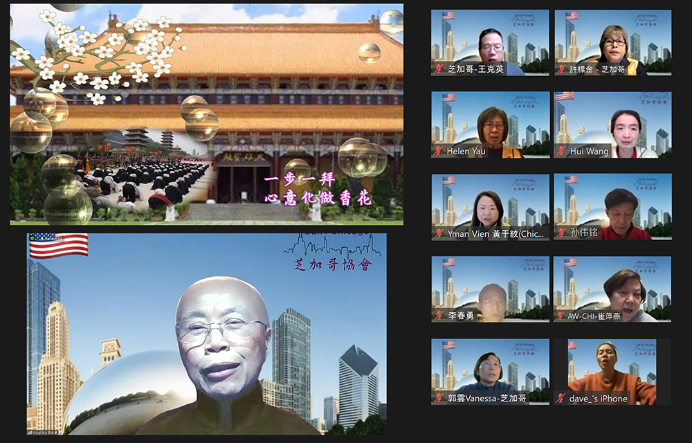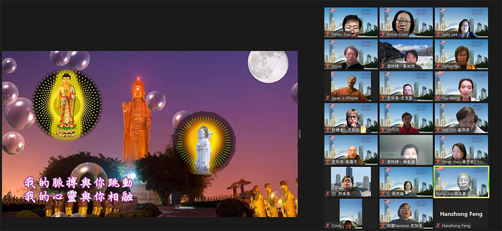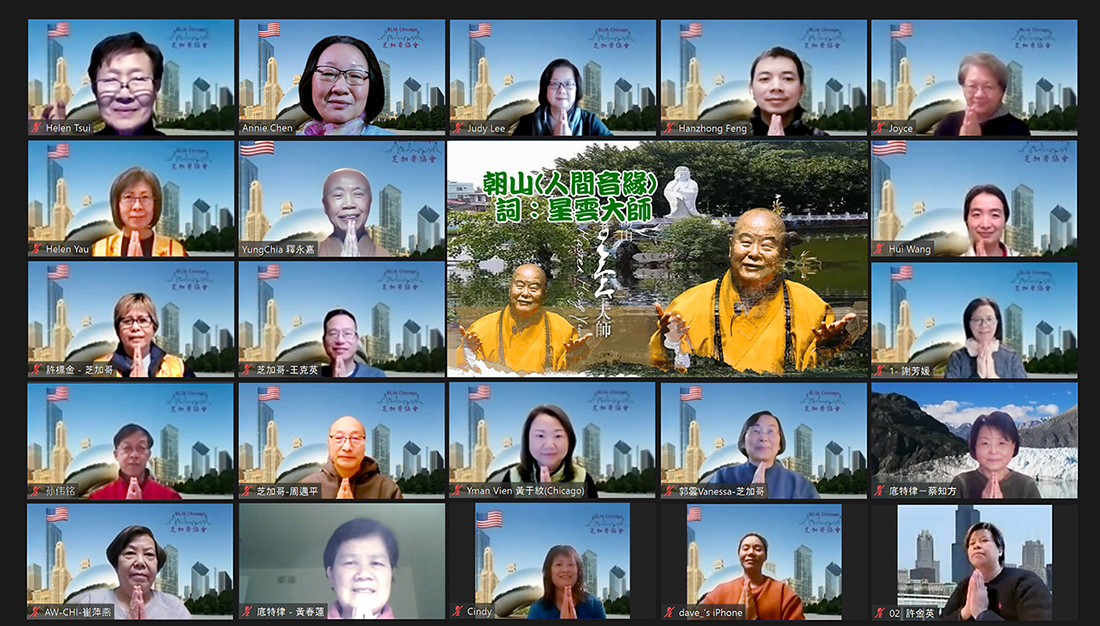 佛光山開山祖師星雲大師於2月5日圓寂。芝加哥佛光山於3月17日,於線上舉辦第一次『人間音緣讀書分享會』;而後於每星期五晚上,由佛光會幹部會員們,輪流帶領進行,一群愛樂的佛光人齊聚歌頌音緣,緬懷大師的浩瀚恩澤,感念大師以歌弘法,推廣人間佛教。