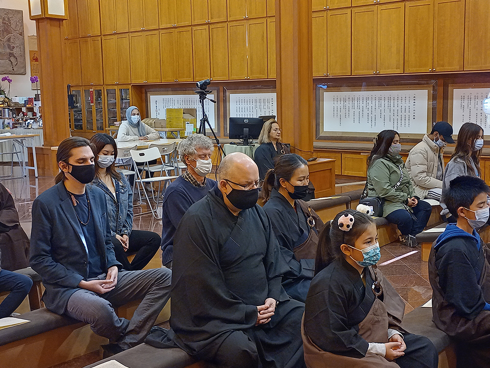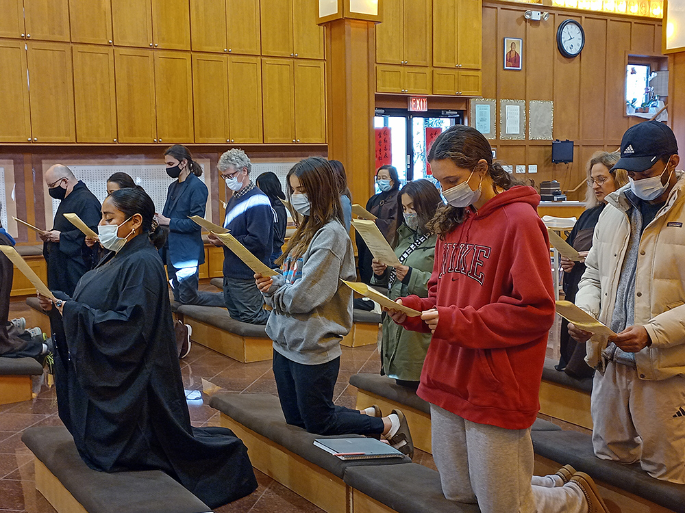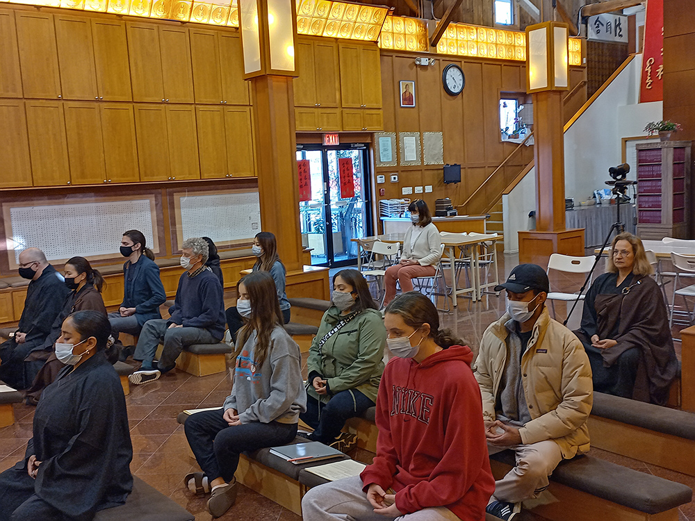 芝加哥佛光山於每月第二個週六上午,舉行英文共修。來自和College of DuPage 和 Naperville Central High School, 選修世界宗教課程的學生,於11月11日蒞臨參加。從誦經,行禪,坐禪,而後的分組討論,認識【人間佛教】,體驗佛教文化,佛法教育和佛陀精神。有恆法師開示,星雲大師提倡的【人間佛教】教義是淨化我們的身、口、意三業,以慈悲包容,做自利利他的事情,以『做好事、說好話、存好心』的【三好】,學習大乘菩薩的性格與精神。