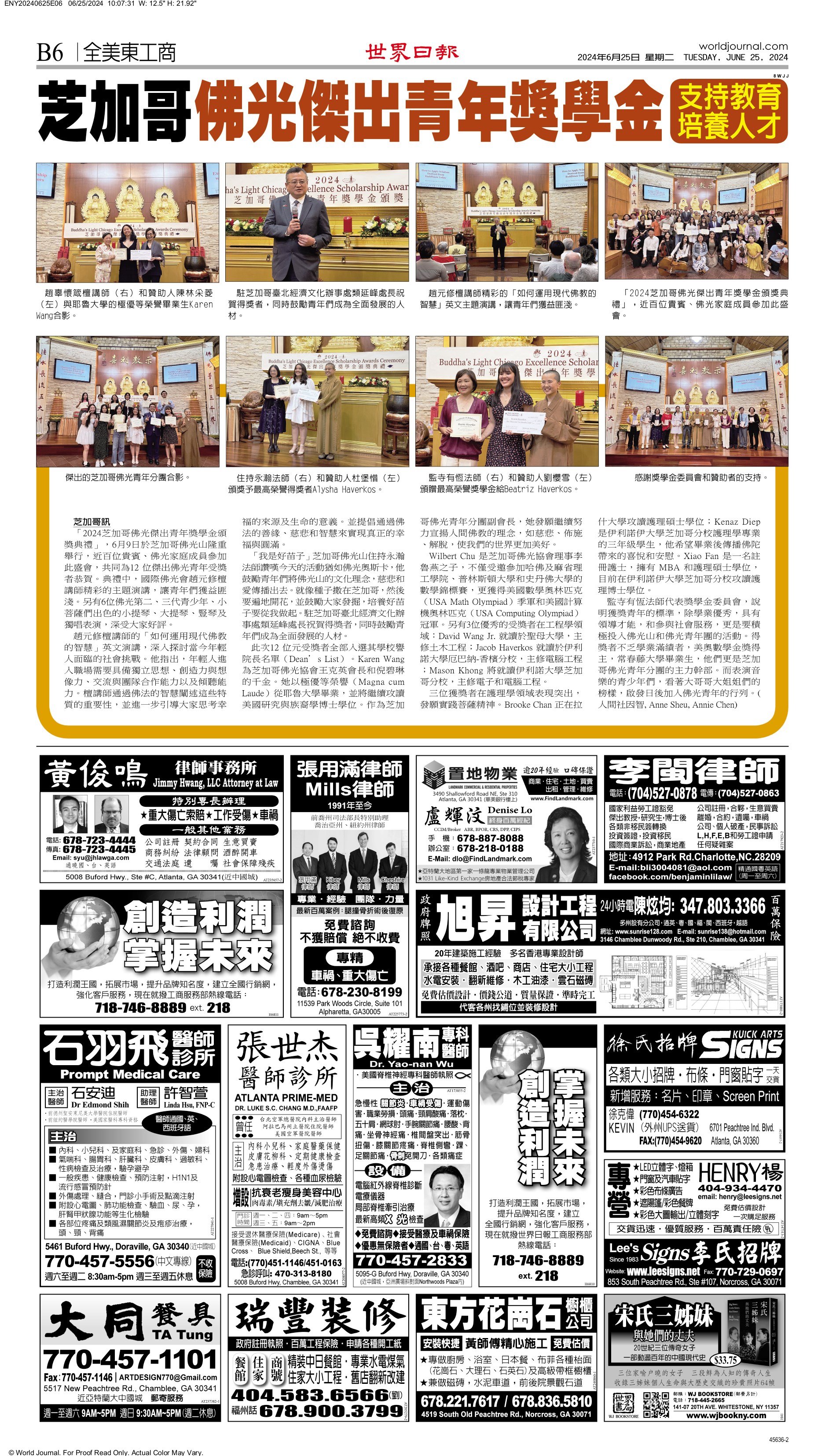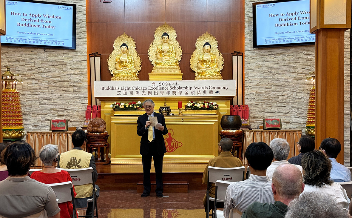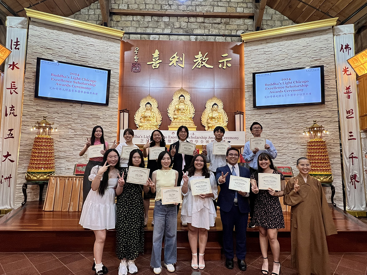 「2024芝加哥佛光傑出青年獎學金頒獎典禮」,6月9日於芝加哥佛光山隆重舉行,近百位貴賓、佛光家庭成員參加此盛會,共同為12 位傑出佛光青年受獎者恭賀。典禮中,國際佛光會趙元修檀講師精彩的主題演講,讓青年們獲益匪淺。另有6位佛光第二、三代青少年、小菩薩們出色的小提琴、大提琴、豎琴及獨唱表演,深受大家好評。