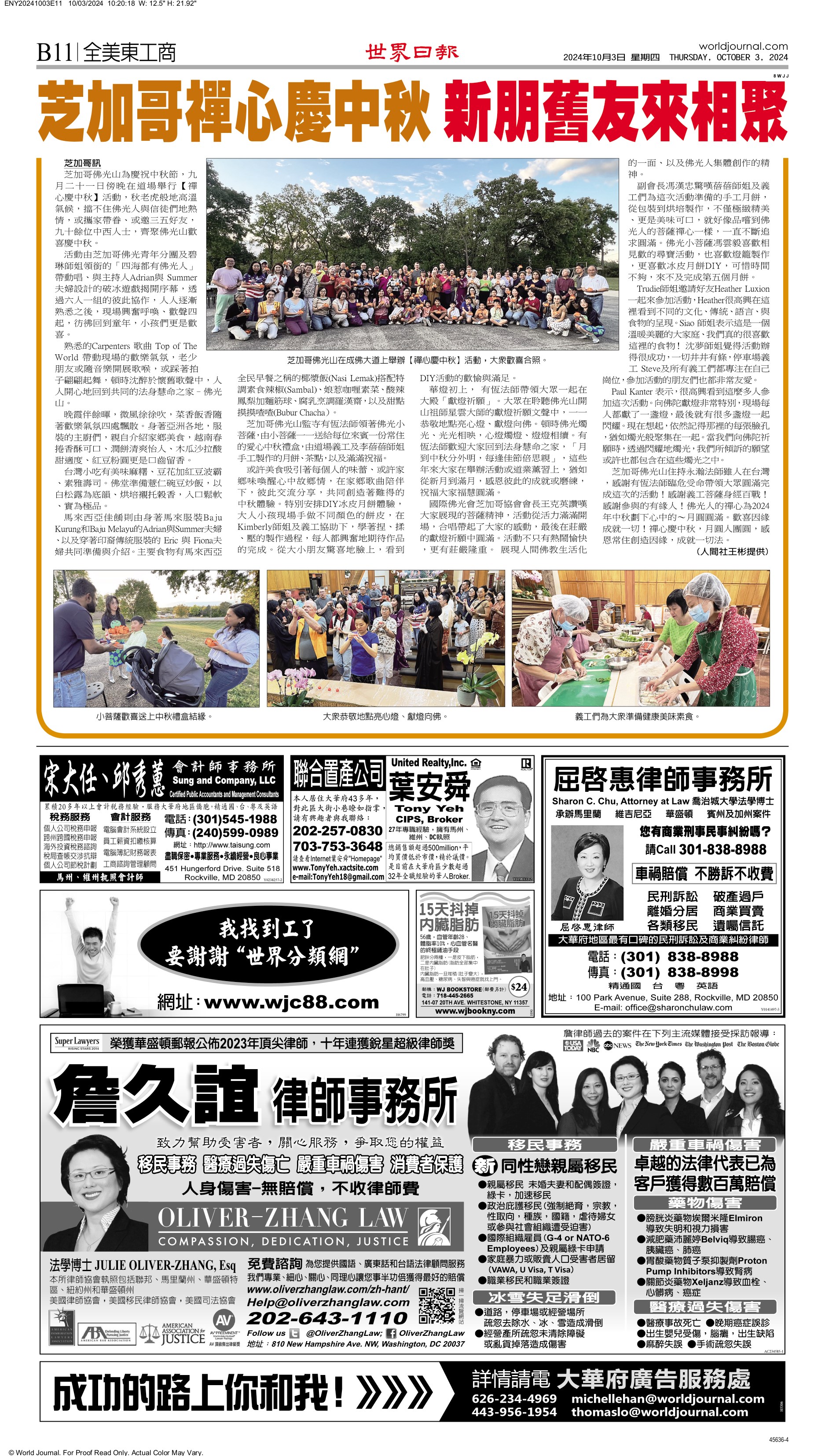 芝加哥佛光山為慶祝中秋節,九月二十一日傍晚在道場舉行【禪心慶中秋】活動,秋老虎般地高溫氣候,擋不住佛光人與信徒們地熱情,或攜家帶眷、或邀三五好友,九十餘位中西人士,齊聚佛光山歡喜慶中秋。