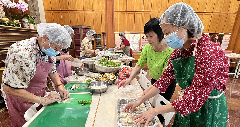 或許美食吸引著每個人的味蕾、或許家鄉味喚醒心中故鄉情,在家鄉歌曲陪伴下,彼此交流分享,共同創造著難得的中秋體驗。特別安排DIY冰皮月餅體驗,大人小孩現場手做不同顏色的餅皮,在Kimberly師姐及義工協助下,學著捏、揉、壓的製作過程,每人都興奮地期待作品的完成。從大小朋友驚喜地臉上,看到DIY活動的歡愉與滿足。