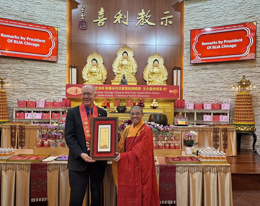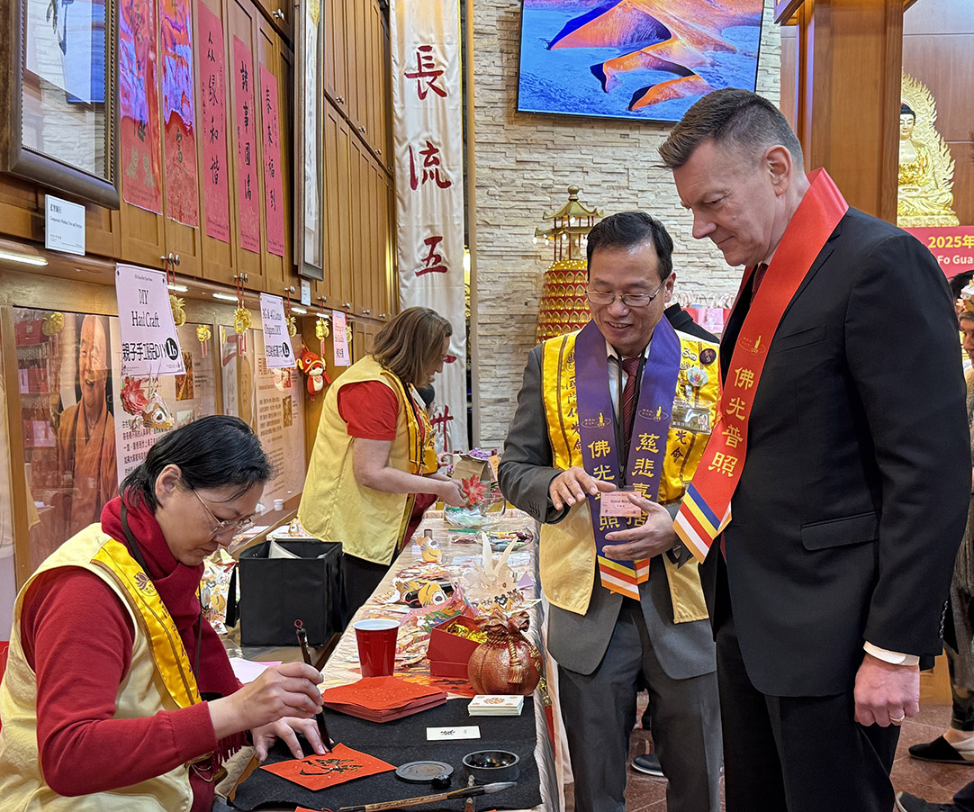 活動中,美國眾議院議員Bill Foster參觀各個文化攤位,對活動中展現的文化融合及其對社會正向影響表示讚賞,認為這有助於促進社會的精神和諧。伊利諾州眾議員Janet Yang Rohr也為大家送上新春祝福,並期許每個人在蛇年都能開創新局,藉由學習提升智慧,迎接新的希望。駐芝加哥台北經濟文化辦事處張正育組長也為在場來賓祈願,祝福大家獲得佛陀的祝福與佛法的滋養。瑞柏市市長Scott Wehrli則以中文祝賀大家「新年快樂」,並感謝佛光山敞開大門,讓社區民眾能夠接觸不同文化,並學習慈悲與智慧。