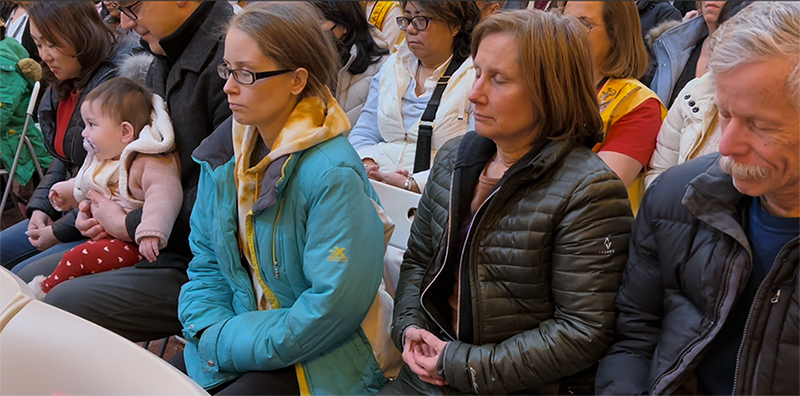 在活動的另一環節中,妙偉法師引導大眾進行了二十分鐘的禪修與品茶,並介紹佛光山的人間生活禪理念。法師教授大家如何在忙碌盲目的生活中,通過關照呼吸的習禪練習來提升自我覺察力,並增強對周遭事物的覺知。更重要的是,要超越禪修僅限蒲團上的傳統概念,鼓勵大家將禪修融入日常生活,讓禪意在每一刻自然而然地展現。