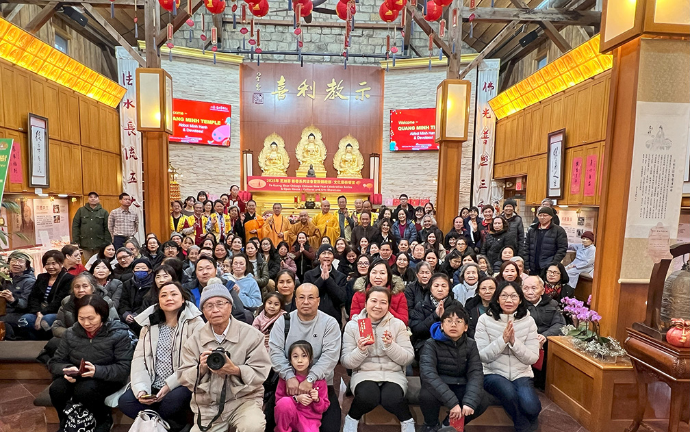 芝加哥北城的越南廟—光明寺,融合漢傳與越南佛教,致力於弘揚正法。2月8日,住持明行法師率領103位信眾至佛光山芝加哥禪淨中心,進行新春祈福之旅。住持永瀚法師及佛光人熱誠接待,並致歡迎詞。