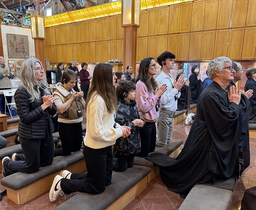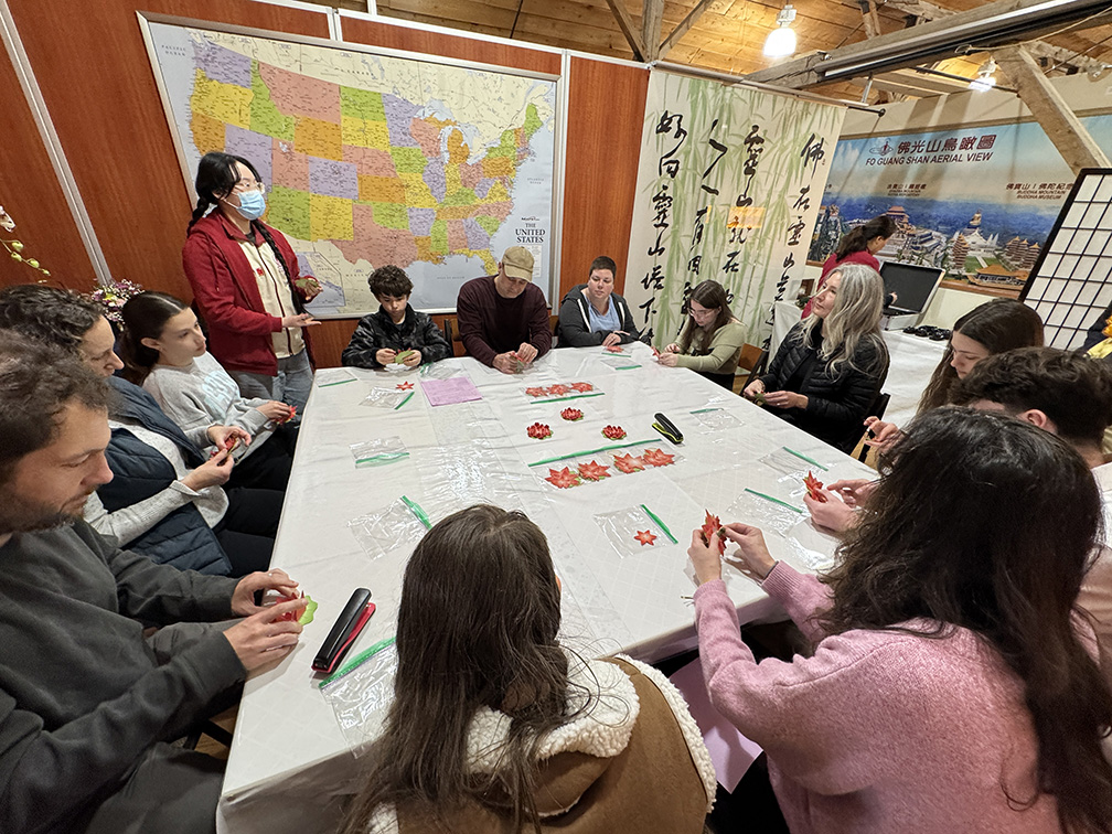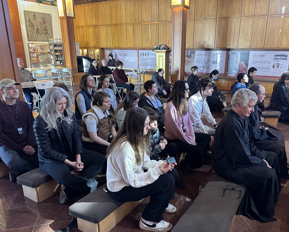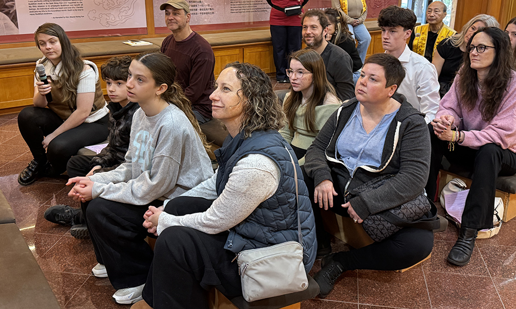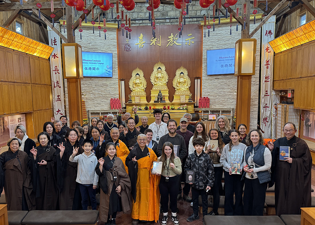 月23日週日上午9:30,來自Naperville 的猶太教堂Congregation Beth Shalom共11位14至15歲的猶太教學生及其家長,與兩位老師一同至芝加哥佛光山參訪,佛光會會員熱情接待。妙偉法師介紹佛光山及星雲大師教育的弘法理念,說明佛光山起源於對教育的重視;在互動中,法師為其解釋大殿三尊佛像及象徵意義,指出不同地區和時代的佛像各具特色,卻都體現了佛陀的教義。