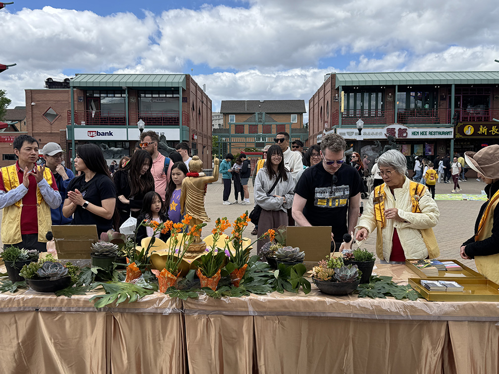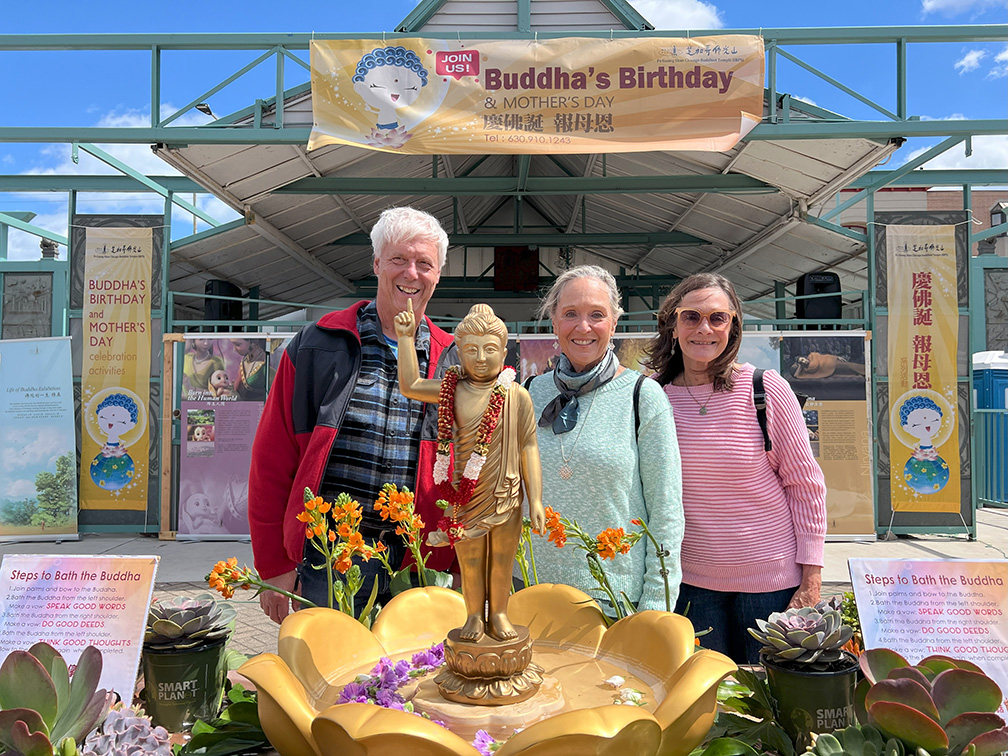 為慶祝佛誕節,芝加哥佛光山今年除在道場舉辦「慶佛誕.報母恩」系列活動外,特於5月17日前往芝加哥華埠廣場舉行「雲水浴佛」活動及「佛陀一生」特展,當日吸引300餘位中西民眾參與。