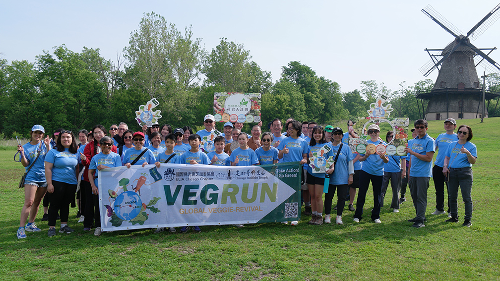響應「你跑步,我捐款」號召,由國際佛光會芝加哥協會6月7日在伊利諾州日內瓦Fabyan森林保護區舉辦『VEGERUN-蔬出愛.以蔬相會』公益蔬食路跑。52位佛光人與嘉賓健走路跑共253英哩,健行綠色健康。特別邀請駐芝加哥台北經濟文化辦事處處長類廷峰、芝加哥華僑文教服務中心主任蔡季穎等貴賓支持活動。