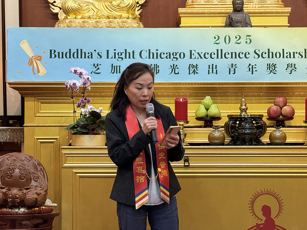 駐芝加哥華僑文教服務中心副主任陳怡珍也親臨現場致意,期勉青年成為身心健全、品學兼優的現代人才。芝加哥協會會長王克英表示:「佛教需要青年,青年也需要佛教。」他指出,獎學金的設立正是人間佛教落實於社會的一項具體實踐。