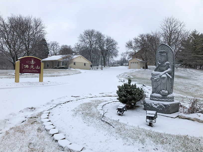 芝加哥位於美國中西部,人口900 萬,是美國第三大城,是美國乃至全世界最重要的交通、經濟、文化、製造中心之一。相對於這些閃耀的光環,一直以來,此地佛教的發展是微弱荒蕪的。有鑑於此,住在芝加哥西南郊區對佛法有興趣的大德們,在2001 年禮請佛光山駐聖路易的永翰法師前來指導佛學,進而於2002 年4 月28 日在東京召開的國際佛光會世界第九次會員大會上授證成立【國際佛光會芝加哥協會】,吳月連(Judy Kord)居士為第一任會長。然而仍無一個固定的共修場所及常駐法師可隨時請教法益,近百位信眾遂聯名,懇請佛光山在芝加哥設立道場,經佛光山宗委會決議,乃於2003 年在大芝加哥地區
