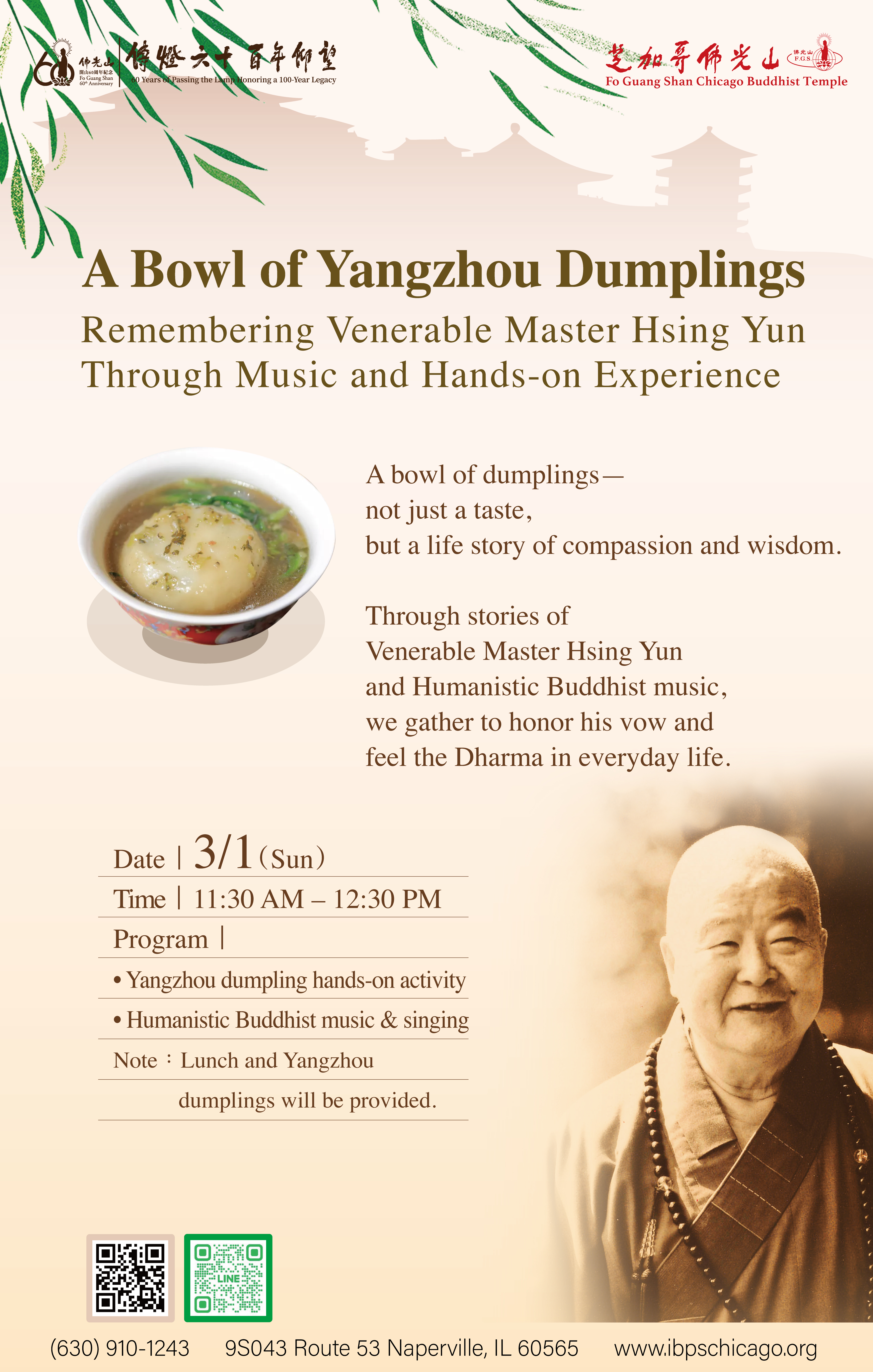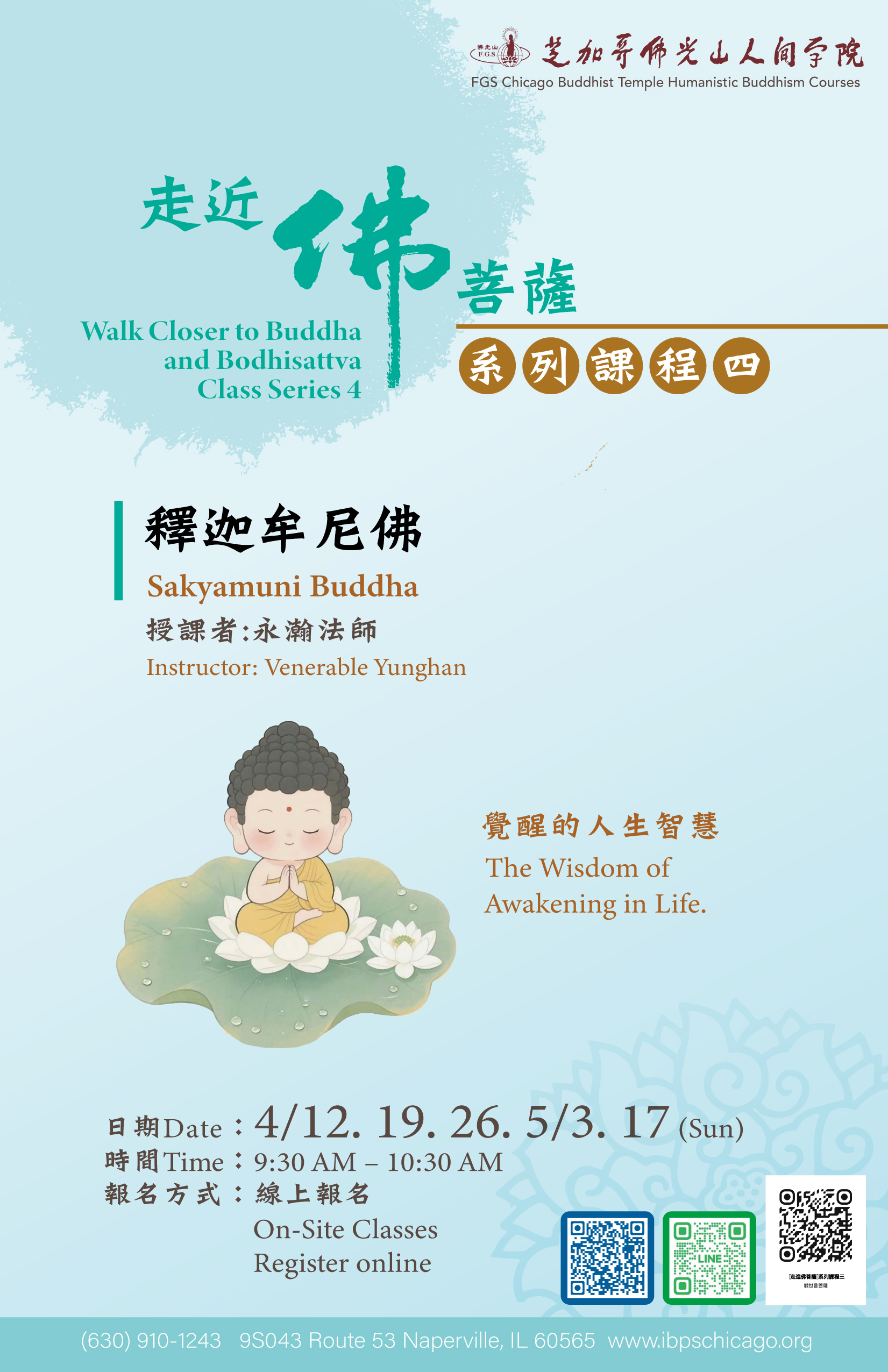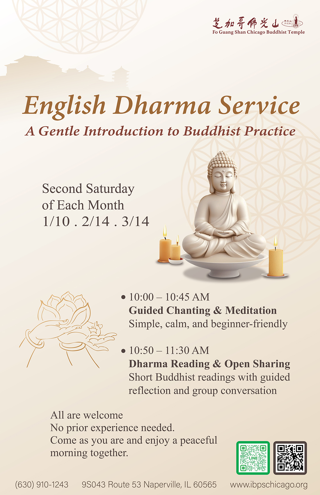 Fo Guang Shan Chicago Buddhist Temple (IBPS) / 芝加哥佛光山 9S043 Route 53 Naperville, IL 60565 TEL: 630-910-1243 Email: chicago@ibps.org